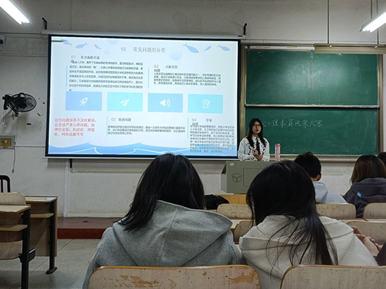在综合楼多媒体教室109成功举办了心理委员风采大赛,学院熊潇潇老师、张啸海老师、学生会主席团成员担任本次大赛评委,来自各班学生代表121人现场观摩了比赛。