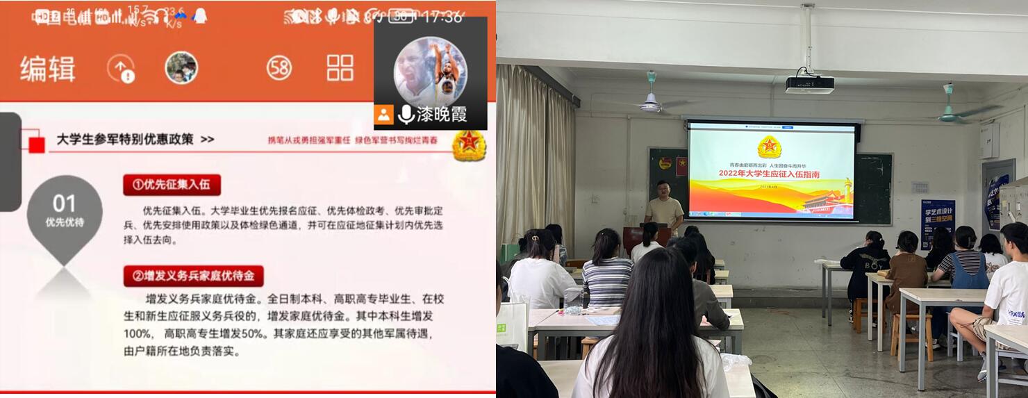 各年级于5月8日进行征兵宣讲活动,展开了线上线下双举措的宣讲行动。