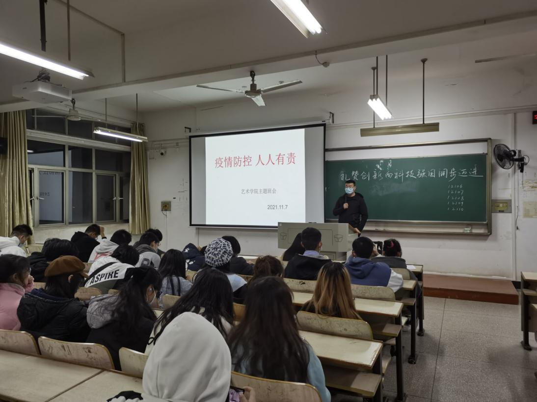 组织2022级新生在综合楼208、209教室开展疫情防控主题班会。