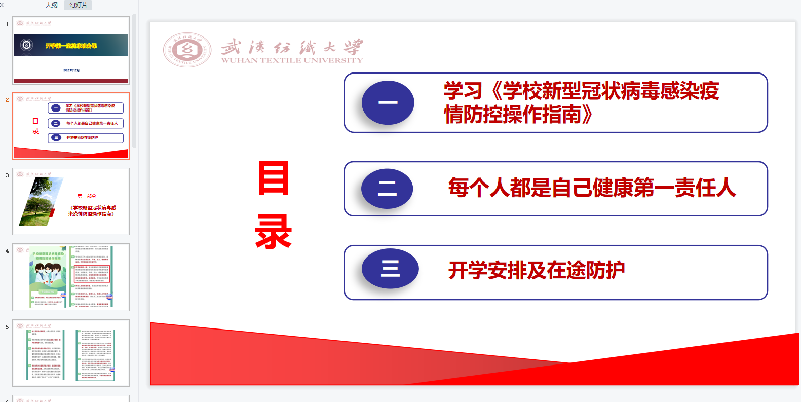 会后,各年级辅导员以线上班会形式组织同学们认真学习《学校新型冠状病毒感染疫情防控操作指南》,倡导大家牢固树立“每个人都是自己健康的第一责任人”意识,并就如何做好日常防护分别从日常起居、饮食、运动、心态等方面详细讲解。最后宣讲了学校开学相关安排,提醒同学们提醒做好返程规划,途中做好个人防护,带好随身物品。后续,各年级辅导员还将“一对一”联系学生,确保所有同学安全返校。