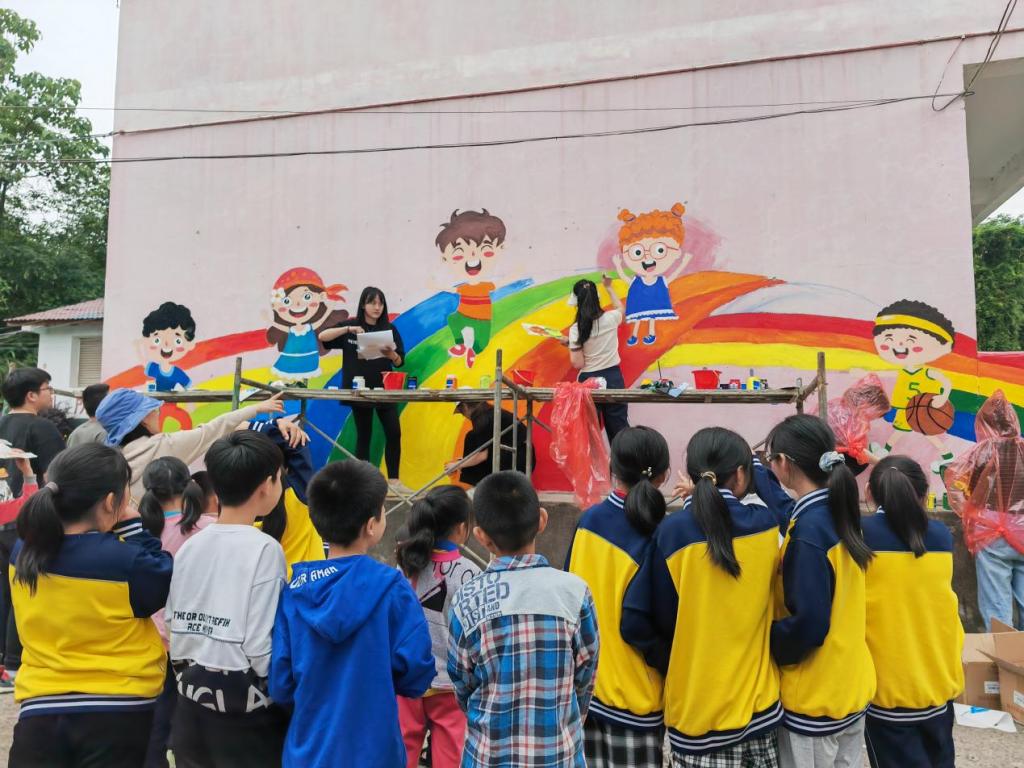 副院长、研究生导师刘凡老师带领研究生党团志愿服务队到黄冈市蕲春县王要小学开展彩色墙绘活动,用文化墙绘扮靓美丽乡村,谱写着乡村振兴新篇章。
