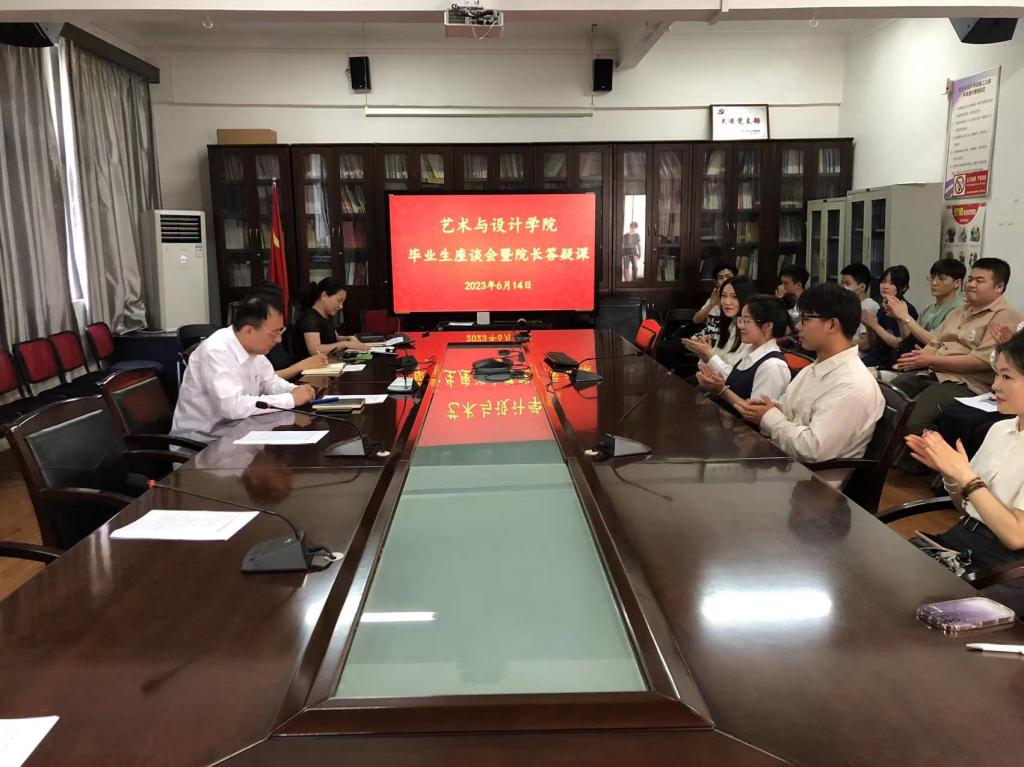 在学院二楼会议室举行2023届毕业生座谈会暨院长答疑课。学院班子成员、系部主任、毕业生辅导员以及毕业生代表参加座谈会。院党委副书记吴双主持会议。