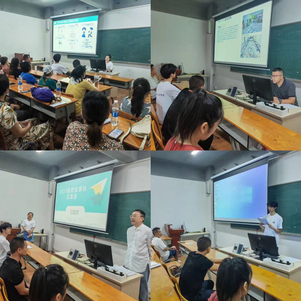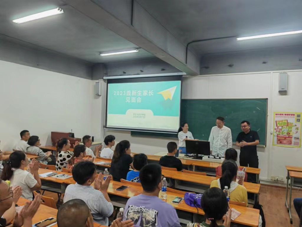 党委书记刘元文、院长石元伍、副院长曹凯、党委副书记吴双、学工办主任张瑜出席见面会,2022级本科生辅导员熊潇潇、新生辅导员陈放、新生家长代表、老生代表参加活动,陈放主持见面会。