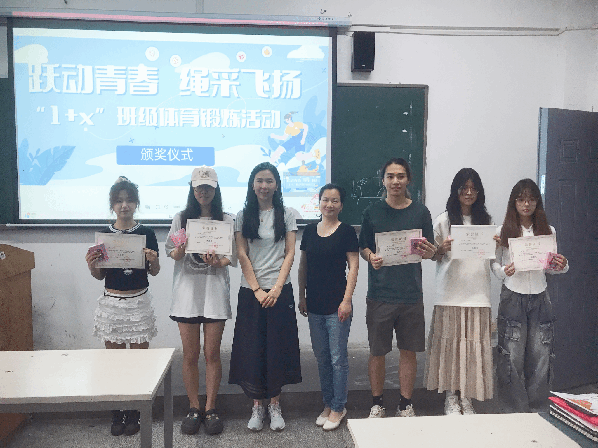 视传12202、视传12203班在学院领导、班主任老师的带领下,开展了为期近一个月的跃动青春、绳采飞扬“1+X”班级特色体育锻炼活动,该活动以“跳绳+体测项目”课余锻炼打卡方式进行,最终,5名学生获得本次活动优胜者。