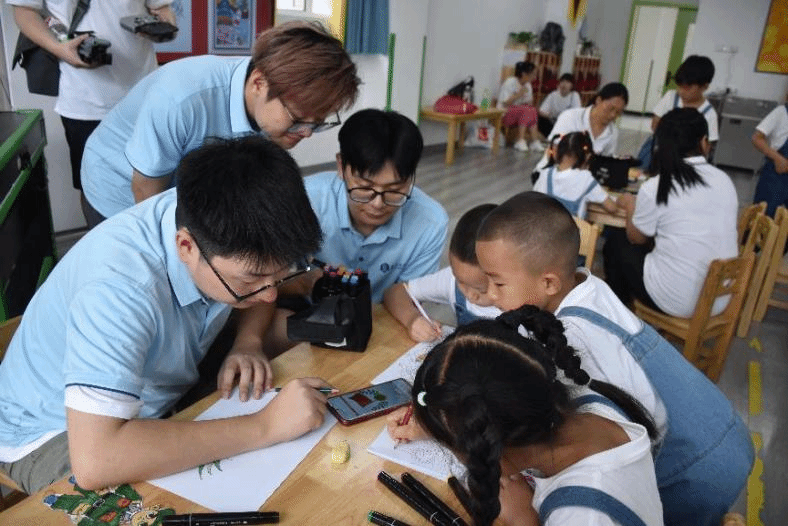 上午,实践团围绕“红色革命历史”开展将军形象肖像画课程。通过讲述红色经典故事,使孩子们了解红色历史,用画笔描绘出心中的英雄形象。孩子们用心倾听、认真描绘,用手中的画笔勾勒出一个个生动、鲜活的红色形象。孩子们在体验绘画的过程中也潜移默化的增强了他们对红色文化的认同感及自豪感。