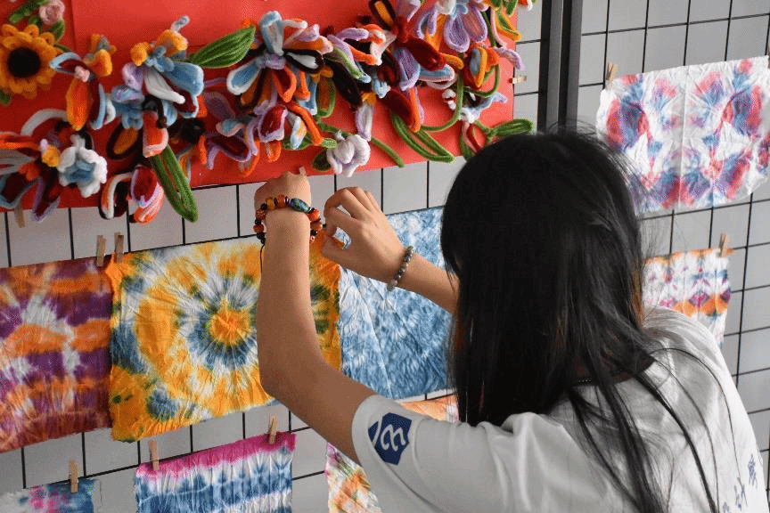 展览内容是将前期孩子们在红色将军形象肖像画课程、红色文化探索课程、布艺扎染课程及“撕纸添画”课程中的作品进行集中展示,每项课程均结合红安县将军故里的文化,融入红色教育,让革命精神沁润童心。这场展览不仅为孩子们构建了一个能够充分展示自己创作才华的绚丽舞台,更是“艺梦启航”团队将美育理念与社会实践完美结合的一次生动展现。孩子们的作品犹如繁星点点,既有充满童趣的色彩斑斓的画作,又有他们巧手制作的各种手工艺品,这些富有创意与童真的作品成为了幼儿园一抹靓丽的风景线。