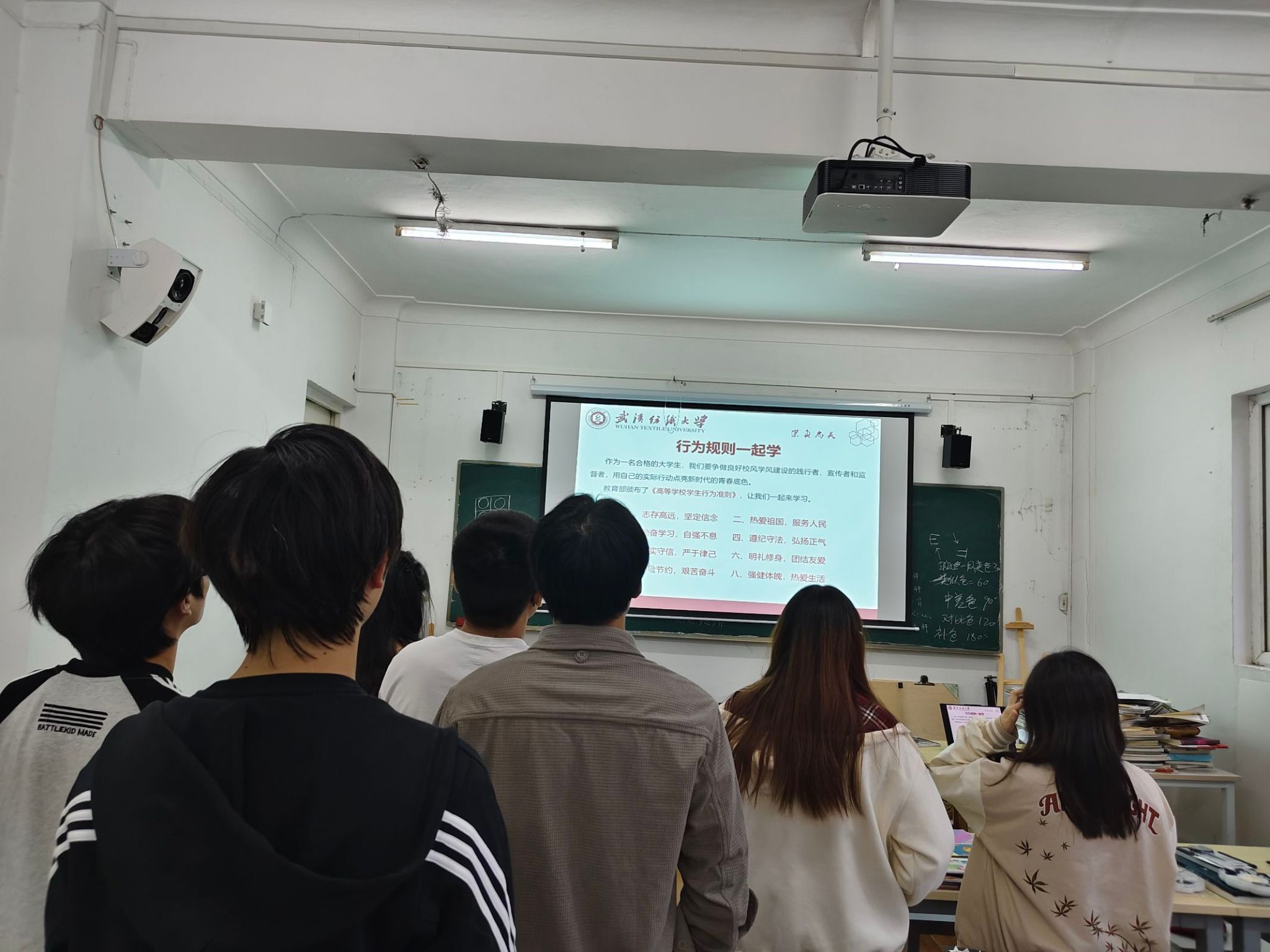 班主任领学了日常行为管理、评优评先、学籍学业管理、大学生资助等内容,强调了学习纪律、生活纪律、行为纪律的重要性,鼓励同学们要树立自律意识,增强纪律观念,注意细节养成,积极参加活动,勇于承担责任。