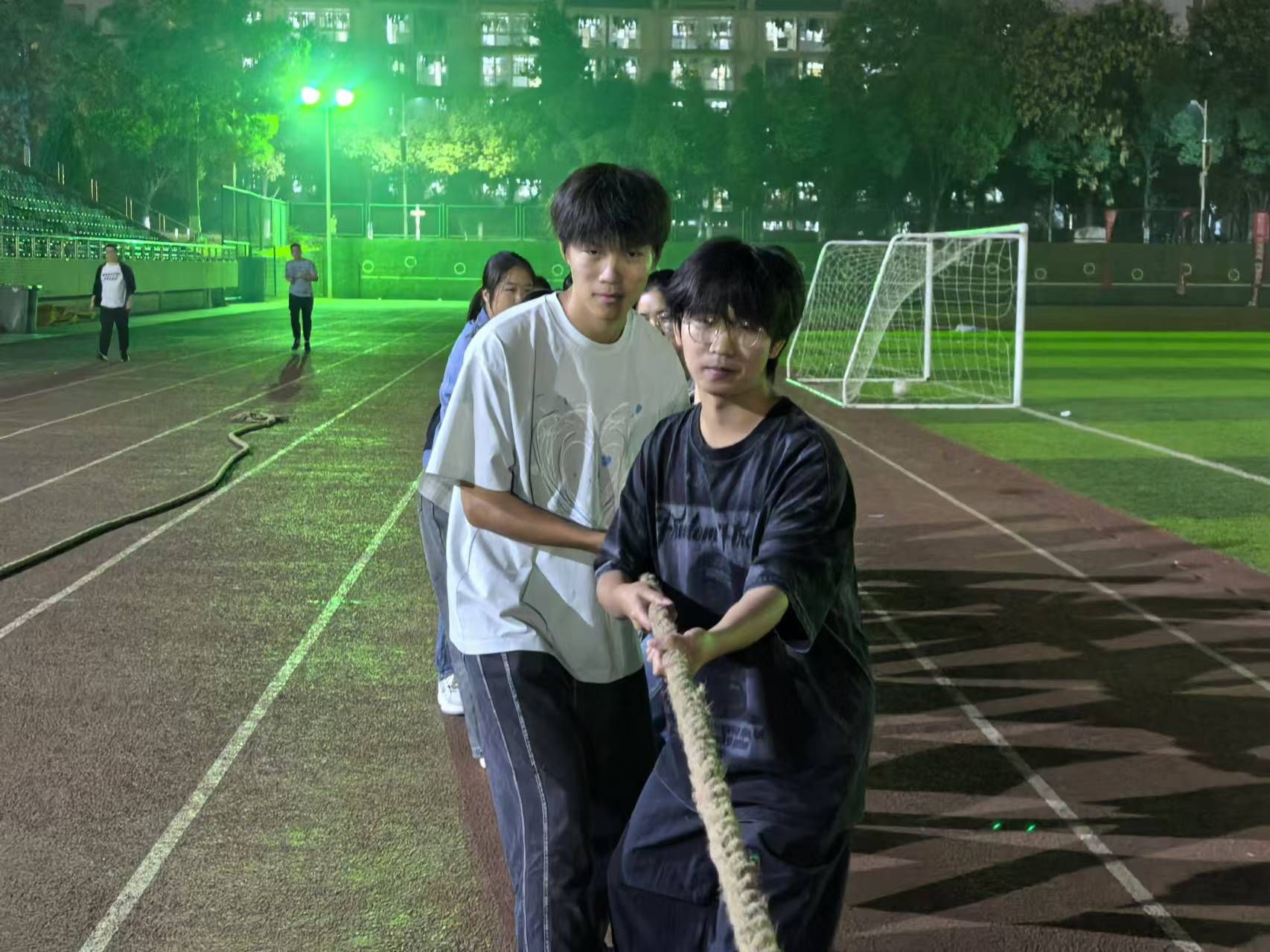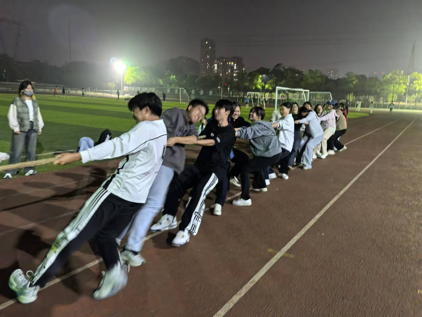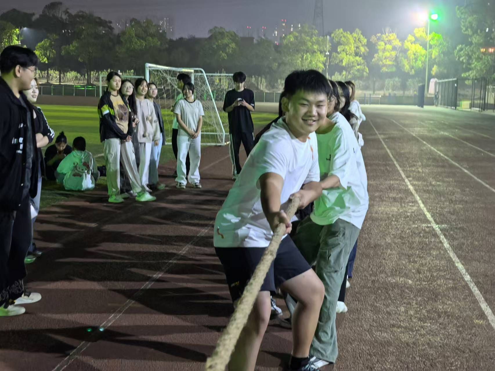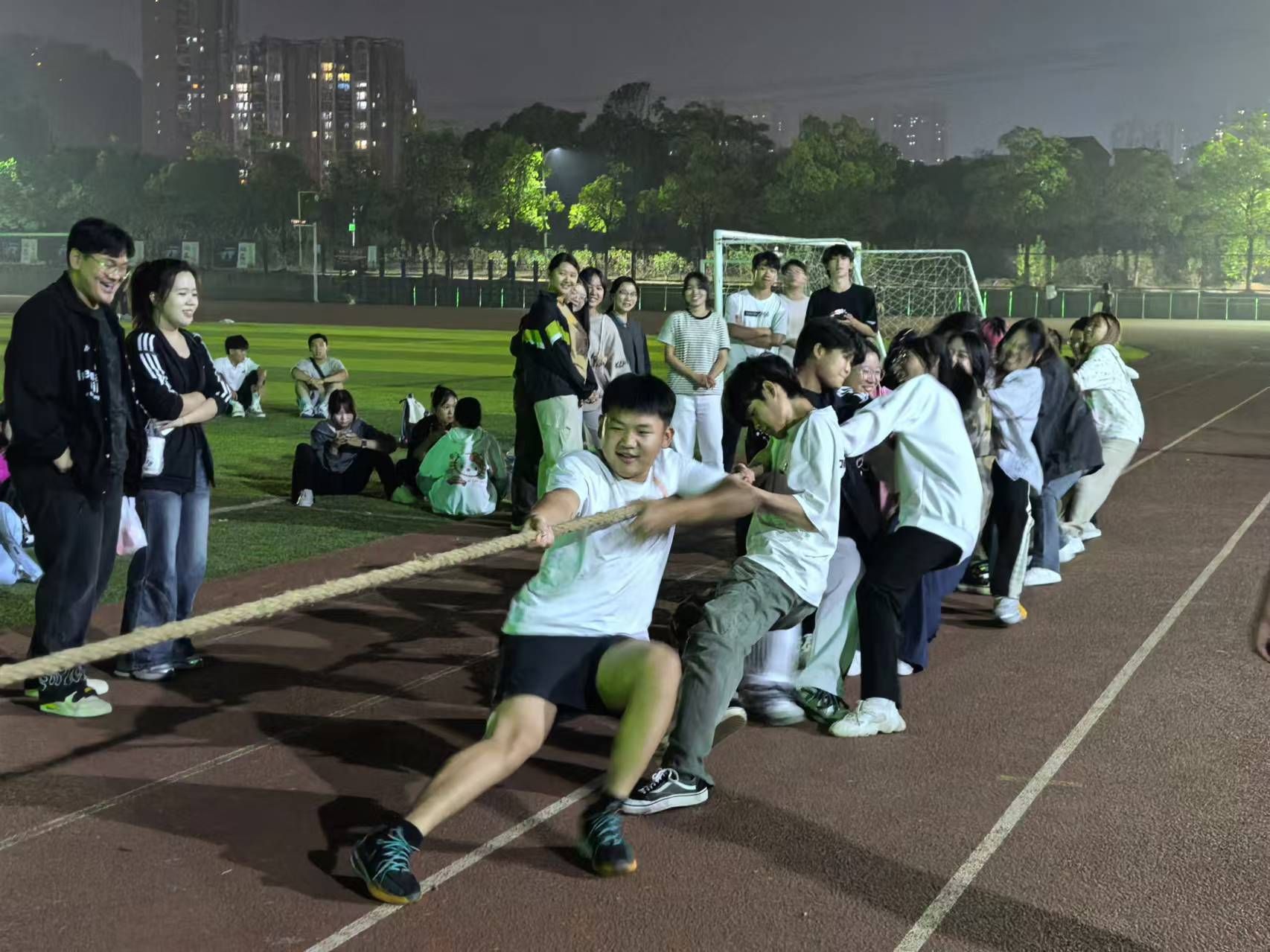 新生体育嘉年华——拔河比赛在阳光校区运动场进行。此次比赛由韩泽光老师担任裁判,共12个班级参赛。