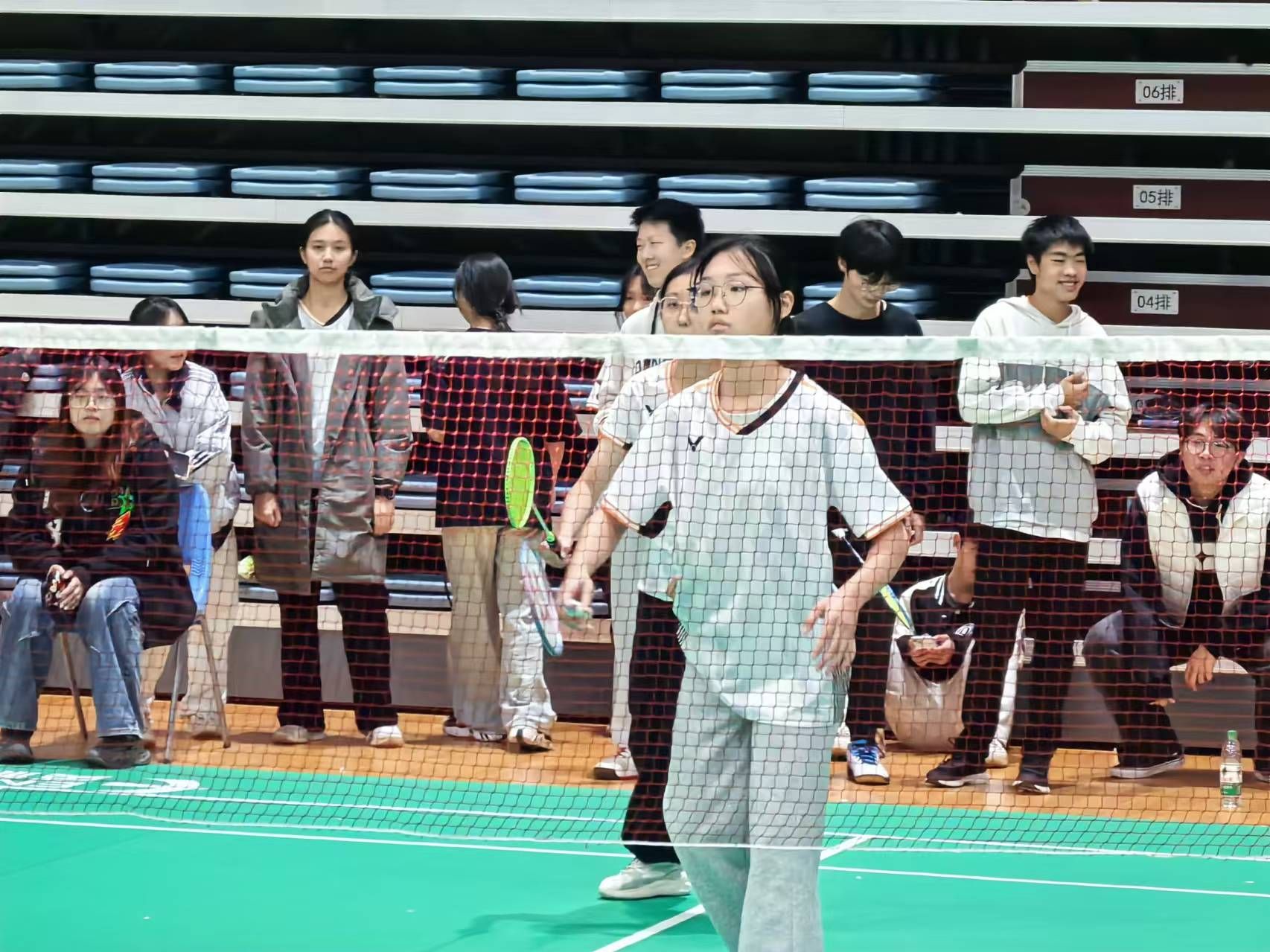 比赛期间,赛场气氛热烈,选手们斗志昂扬。轻盈的羽毛球在空中来回穿梭,选手们精准的发球、快速的扣杀、巧妙的吊球,展示出了较高的竞技水平和良好的体育精神。无论是男单、女单,还是双打比赛,同学们都全情投入,每一分的争夺都扣人心弦,比分也常常交替上升,现场观众的加油声和欢呼声不绝于耳。