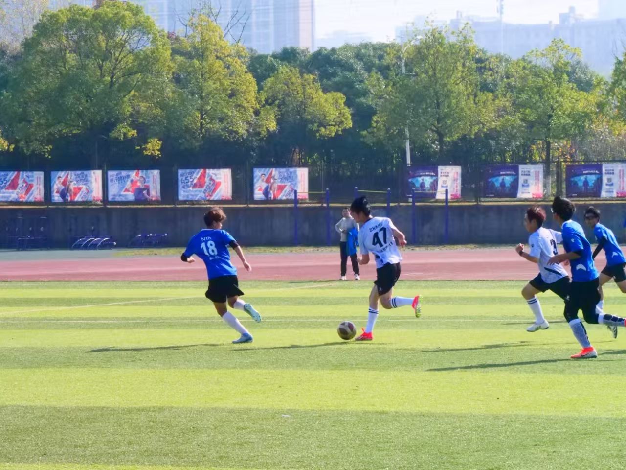 比赛期间,各支球队全力以赴,进攻时犀利的突破、精准的传球,防守时顽强的拼抢、默契的配合,充分展现了新生们的青春活力与团队精神。场上的球员们挥汗如雨,为了每一次球权、每一个进球奋力拼搏,而场下的观众们也热情高涨,欢呼声、加油声此起彼伏,将比赛氛围一次次推向高潮。
