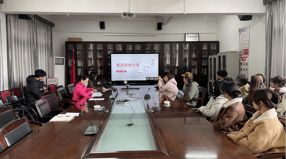 在217会议室举办考研复试交流会。党委副书记吴双、2025届毕业生辅导员徐瑜蔓、艺术学院部分考研学子参加此次活动。