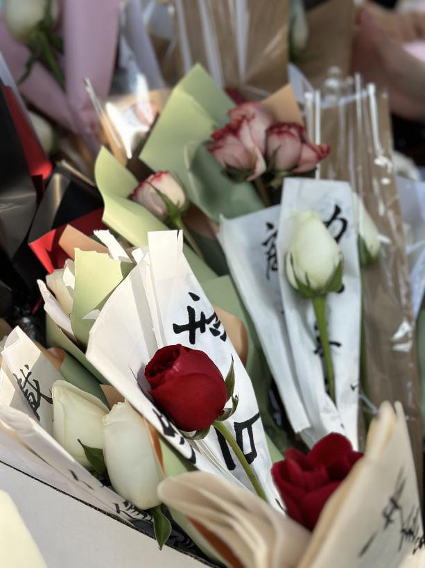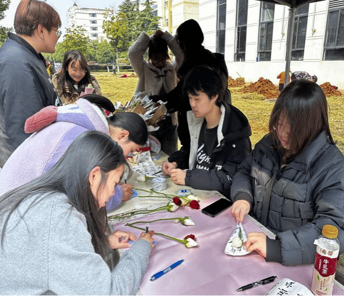 随后,学生会成员们送给前来参与活动的每位女性教职工以及女同学一支鲜花,用芬芳的花朵传递关怀与问候,送上来自百合漫画