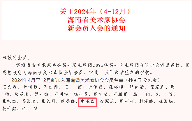 工艺美术12302班学生史承鑫凭借出色的艺术创作能力和专业素养,成功通过严格评审,入选海南省美术家协会会员,成为该协会为数不多的学生会员之一,展现了学院人才培养的卓越成果。