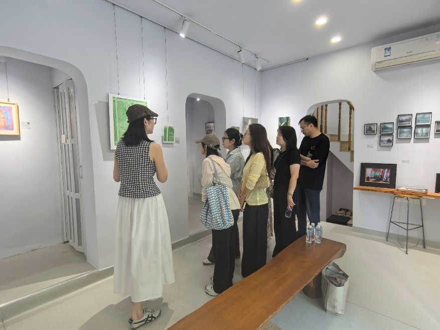 艺术学理论中心陆兴忍老师带领2025级研究生到位于武汉江岸区四唯街道五福小路5号的“栖艺术空间”参观走访。栖艺术空间画廊正在展出的是“得闲”为主题的青年艺术家的画展,意旨 “日常惊喜都藏在节奏的缝隙里,闲下来才能看见美”。“栖艺术空间”负责人彭信宇热情地接待了到访的师生,并一一对展览的画作做了精细的点评介绍,师生们沉浸于这场小而美、让人若有所悟的展览中。师生还与彭信宇就其画廊的运营、策展等展开调研,对展览策划与执行中“主题设定与艺术家选择”、“展览结构与空间设计”、“布展与撤展管理”;对画廊运营中的“艺术家联络与维护”、“艺术品销售与客户关系管理”、“艺术品售后服务与增值”、“品牌传播与市场营销”等问题展开探讨。通过此次调研,师生们不仅对艺术学理论中心开设的《艺术批评与策划》、《艺术管理专题》等课程的相关理论有落地性的切身认知,并且更加明确了艺术学理论专业研究生的就业方向及其所需具备的专业知识和专业技能。