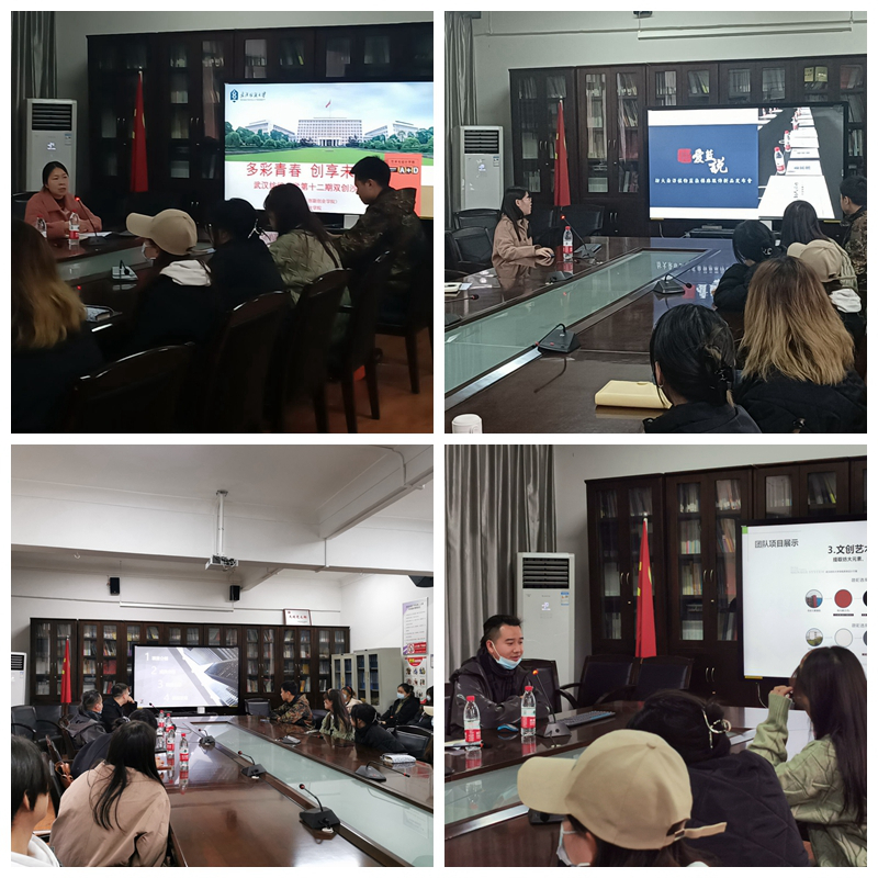 来自服装学院的郭雯茜、艺术学院的彭信宇、张世邦为同学们讲解自己的创业项目《纺大染语》、《耐味》和《荆楚织梦--文旅融合赋能纺织非遗IP构建》,向同学们分享在创业道路上的探索与心得。