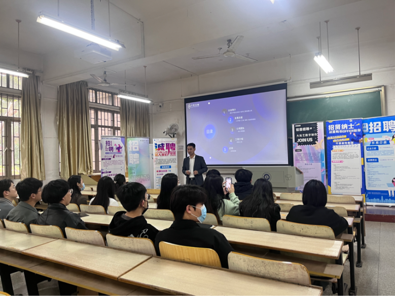 在综合楼110举办校园联合招聘宣讲会,宣讲企业有:三维空间教育咨询湖北有限公司、武汉天工时代艺术文化发展有限公司、东易日盛集团、千思装饰集团、武汉大拓艺数字制作有限公司、湖北宁匠全案设计装饰工程有限公司、武汉零点视觉数字科技有限公司等七家公司。