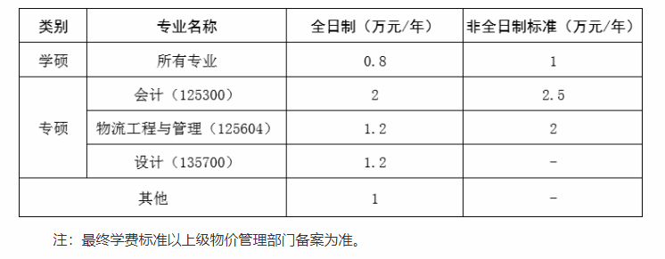 全日制研究生:学习方式为全脱产,非全日制研究生:学习方式为全脱产或半脱产。收费标准见下表: