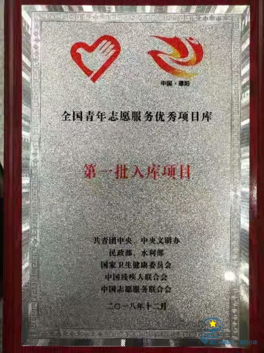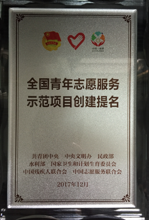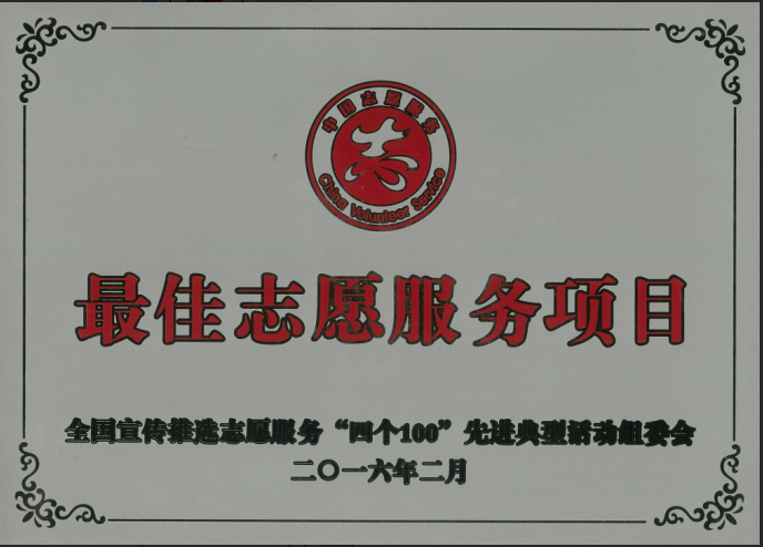 2016年中组部、中宣部、中央文明办、民政部、团中央首届“四个100”评选活动——全国最佳志愿服务项目,并作为湖北唯一代表进京参加全国学雷锋推进会,受到国家部委负责人表彰