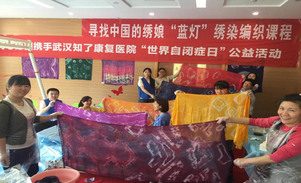 为了能够更好的帮助自闭症患儿及其家庭,2014年,蓝灯志愿团开始摸索公益创业之路。自闭症孩子在课堂上创作的艺术作品,包括手工编织、陶艺制品、画作等,被志愿者们复制在文化衫上、陶瓷杯上.蓝灯志愿者和自闭症儿童先后在汉口江滩、武汉植物园等地开展义卖活动;在各类大型文艺活动举办众筹;与企业合作,把孩子们的画作印在日用品上,促进人们对自闭症的认识。2018年,团队项目“打造中国的绣娘”,与非遗汉绣相结合,开发绣、染、编、织的课程,培养残障儿童及其女性家长的技能,所产生的作品与衍生品在蓝灯的微店售卖,通过这种方使得困难家庭获得生存技能,脱贫致富,另一方面培养汉绣传承人,为中国的传统文化、技艺延续作出贡献。2019年,团队的项目“灿若繁星—蓝灯文创”参加第三届“武汉大学生文创大赛”,与来自全国各地四百多个团队竞技,荣获三等奖。几年来,蓝灯在创业的道路上不断摸索前行,前后所获收益近20余万元、以及免费公家卡等全部用于自闭症儿童的帮扶。